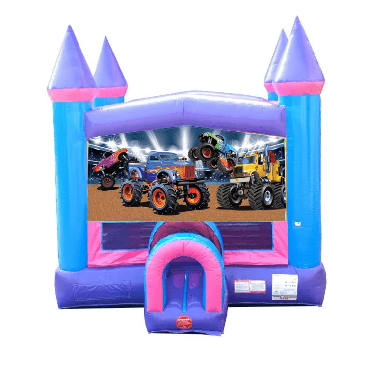 Monster TruckPink, Purple, & Blue Bounce House:Monster Truck1 Introducing the ultimate party attraction: our vibrant Pink, Purple, and Blue Bounce House! Perfect for adding a splash of color and endless fun to any event, this eye-catching bounce house features a dazzling blend of pastel pink, rich purple, and serene blue. The cheerful colors create a whimsical atmosphere that delights children and makes for stunning photos.