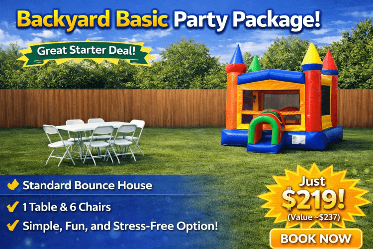 Keep it easy and let the kids bounce their energy out! The Backyard Basic package is perfect for smaller parties and budget-friendly fun. It includes everything you need for a great time without overcomplicating things—just set it up and let the laughter begin.